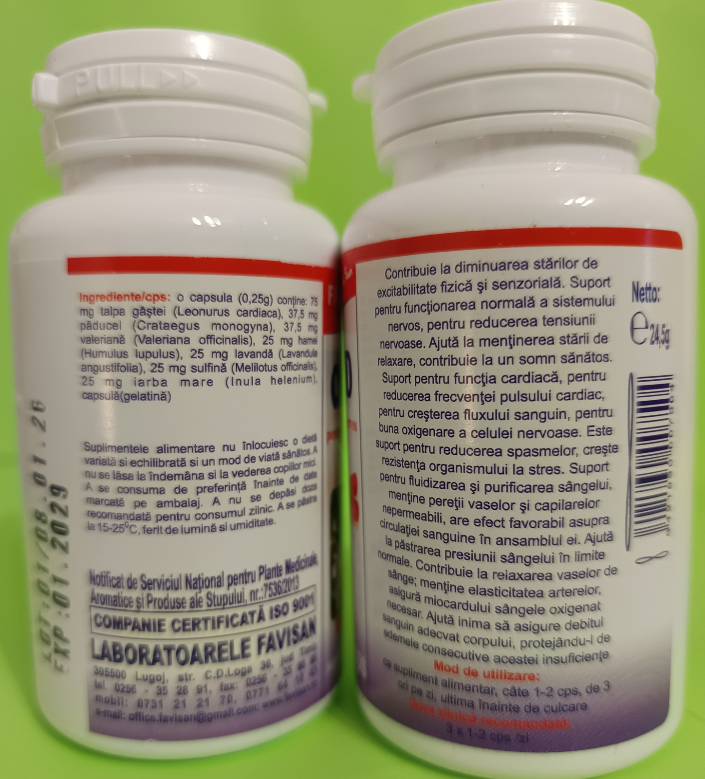 Suport pentru: functionarea normala a sistemului nervos, pentru reducerea tensiunii nervoase; functia cardiaca, pentru reducerea frecventei pulsului cardiac, pentru cresterea fluxului sanguin, pentru buna oxigenare a celulei nervoase; reducerea spasmelor, creste rezistenta organismului la stres; pentru fluidizarea si purificarea sangelui, mentine peretii vaselor si capilarelor nepermeabili, are efect favorabil asupra circulatiei sanguine in ansambul ei.