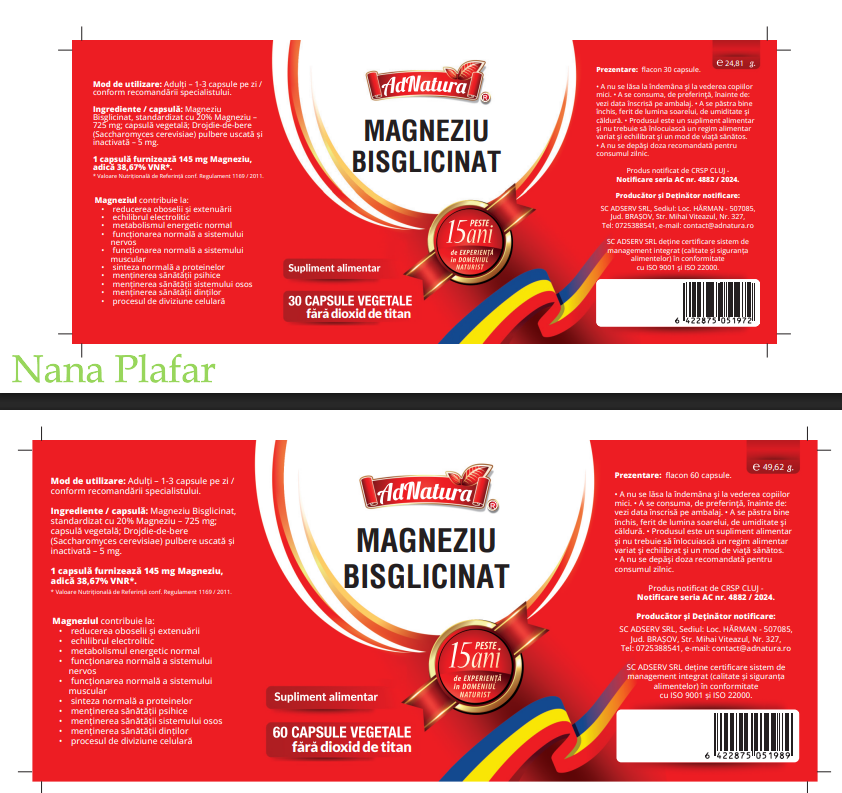 AdNatura MAGNEZIU BISGLICINAT 145 MG AdNatura