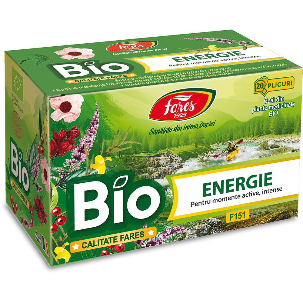 CEAI BIO ENERGIE, 20 plicuri cu anvelopa si snur - ghimbir, hibiscus, scorțișoară, ceai verde, mate