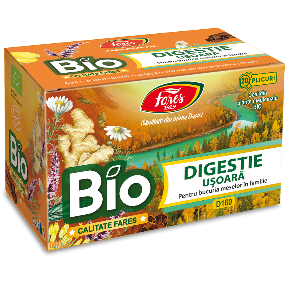 CEAI BIO DIGESTIE USOARA, 20 plicuri cu anvelopa si snur-mentă, mușețel, chimion, fenicul, chimion