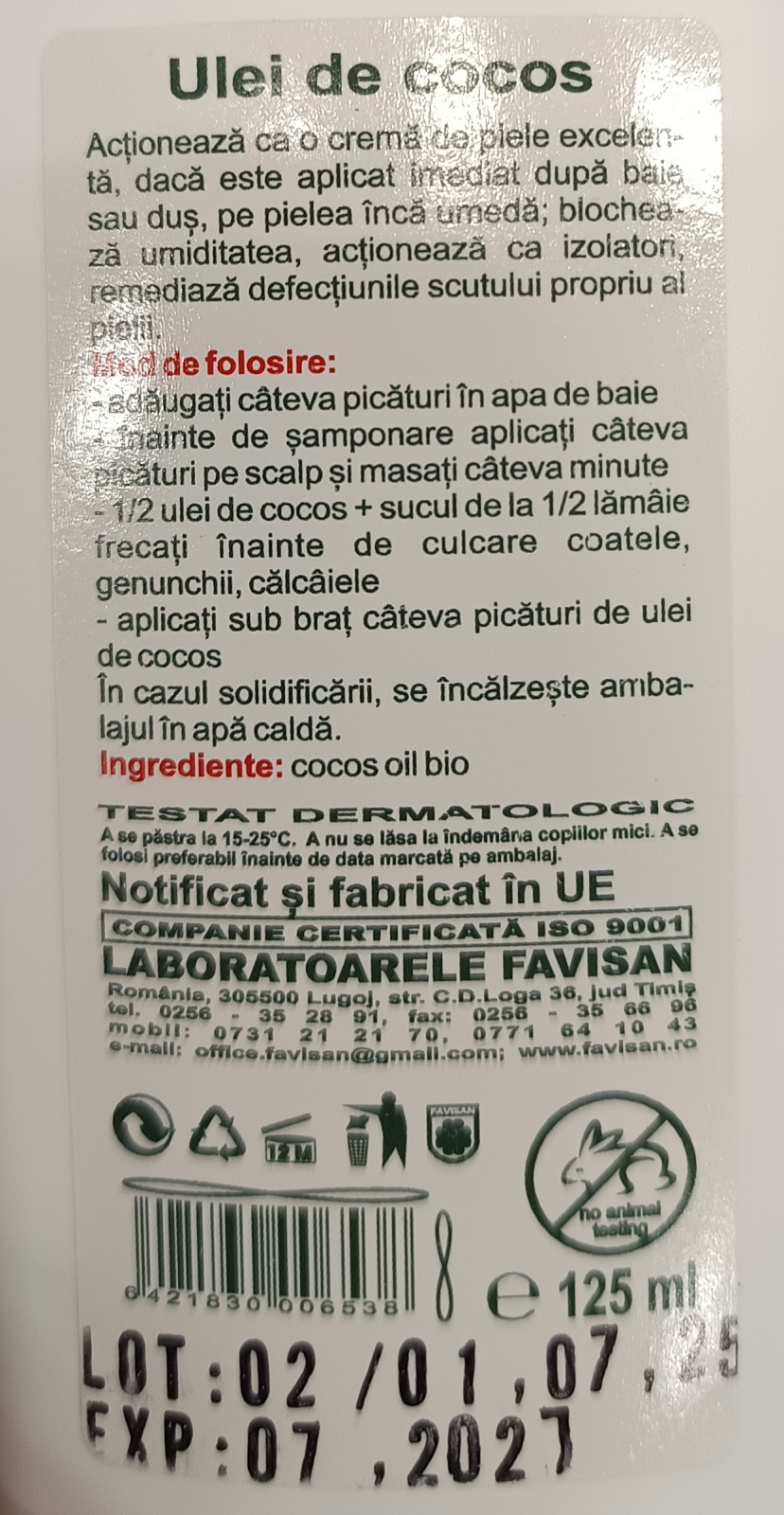 FAVISAN ULEI DE COCOS BIO pentru fata si corp, 125 ml, Favisan