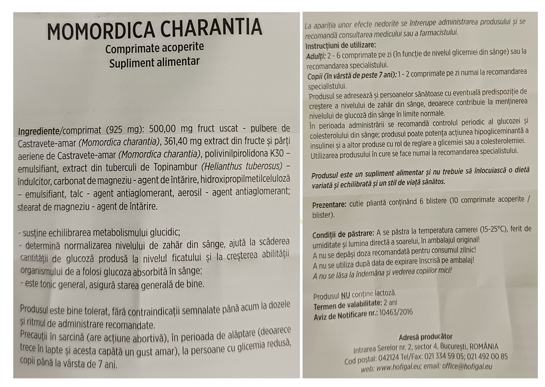 Castravete Amar 500MG si extract din tuberculi de Topinambur* (Helianthus tuberosus)
