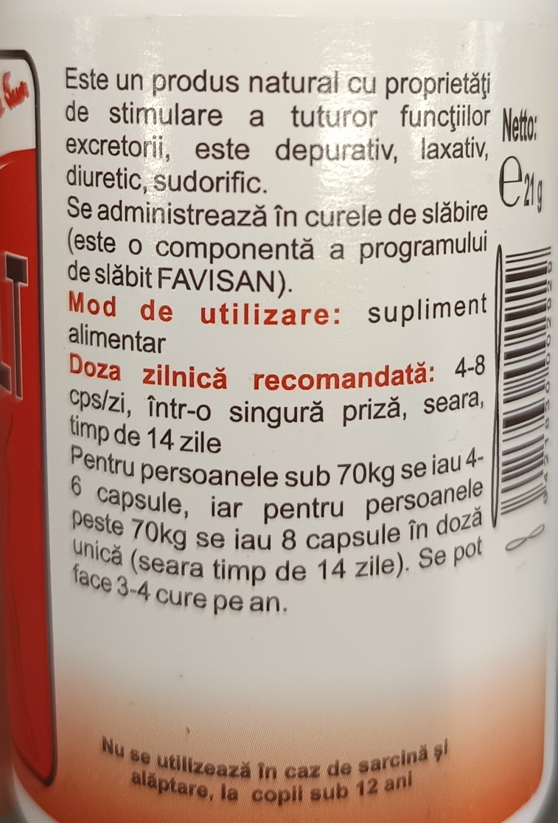 persoanele peste 70 de kg se iau 8 capsule în doza unică seară timp de 14 zile.