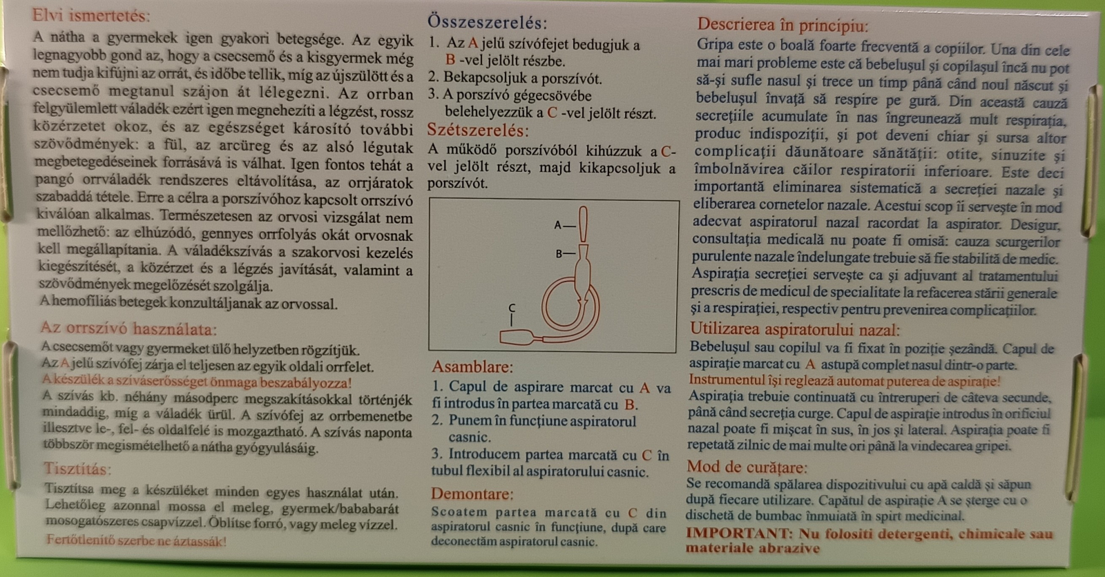 Capul de aspiratie marcat cu A astupa complet nasul dintr-o parte si va fi introdus in partea marcata cu B.
