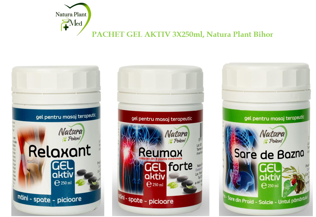 NATURA PLANT PACHET GEL AKTIV: RELAXANT, REUMAX, SARE DE BAZNA, 3X250ml, Natura Plant