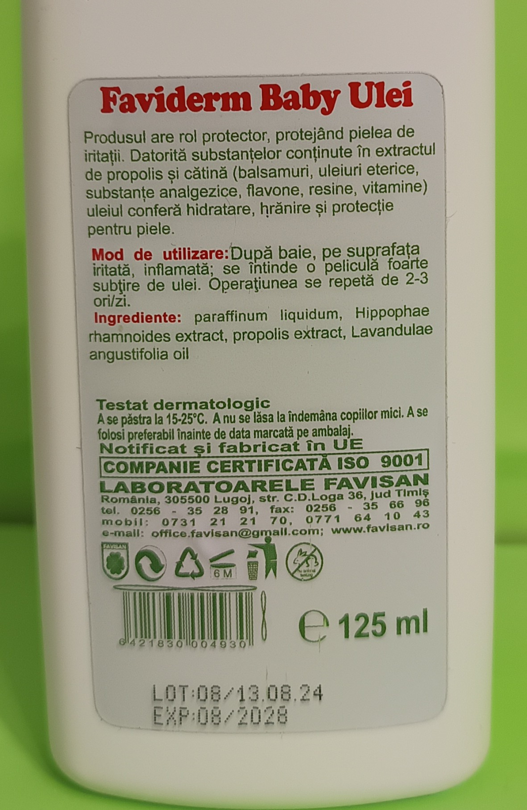 ULEI cu PROPOLIS si CATINA, Faviderm Baby
