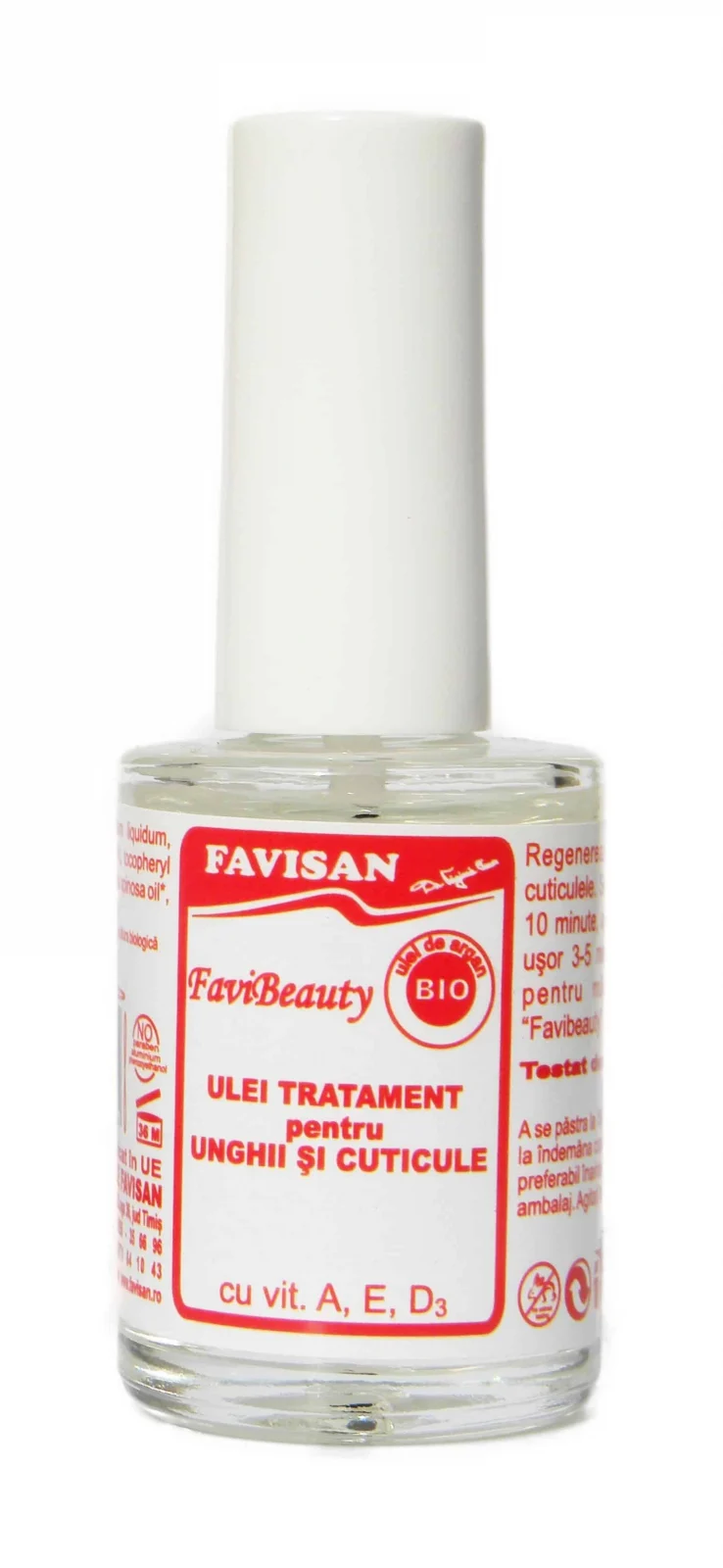 ULEI TRATAMENT UNGHII, 14 ml: Tratament imbogatit cu ulei mineral si vitamine (A, E si D), ce hraneste si fortifica unghiile, conferindu-le elasticitate si rezistenta la rupere, iar in acelasi timp hidrateaza intens cuticulele. Are efect de regenerare si ajuta la obtinerea unei manichiuri frumoase, cu aspect sanatos si ingrijit.