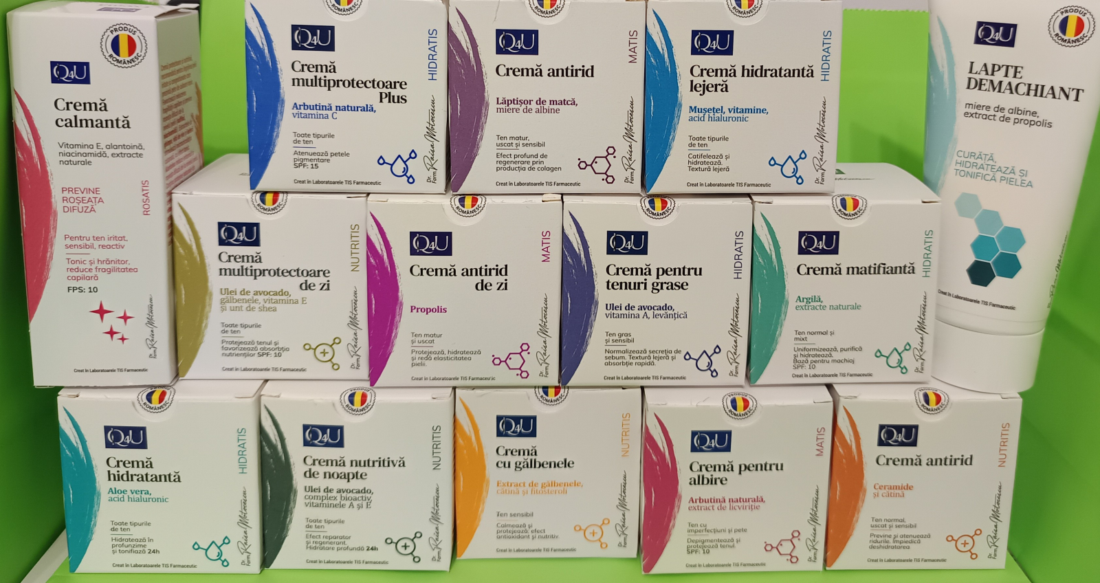 ̧oricelului, iederă, mușețel, licviriție), extracte uleioase (cătină, germeni de grâu, muşetel, gălbenele).
