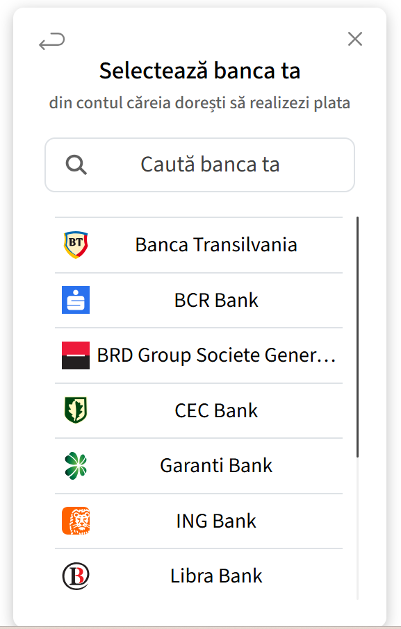 2. Alege Banca ta din lista celor 12 banci prezente in SmartPay