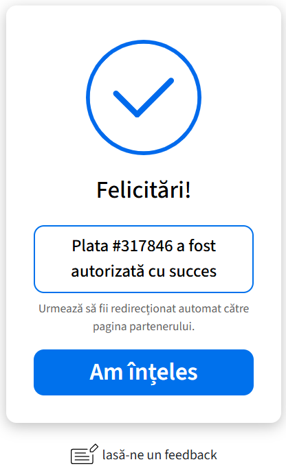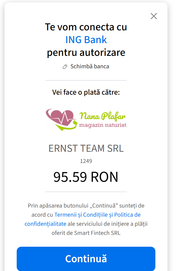 Aceasta metoda de plata este realizata si securizata cu SmartPay si dezvoltata de Smart Fintech S.R.L., institutie de plata autorizata de Banca Nationala a Romaniei.