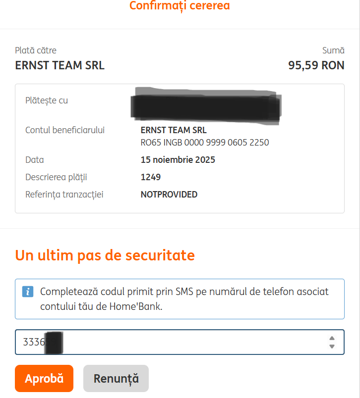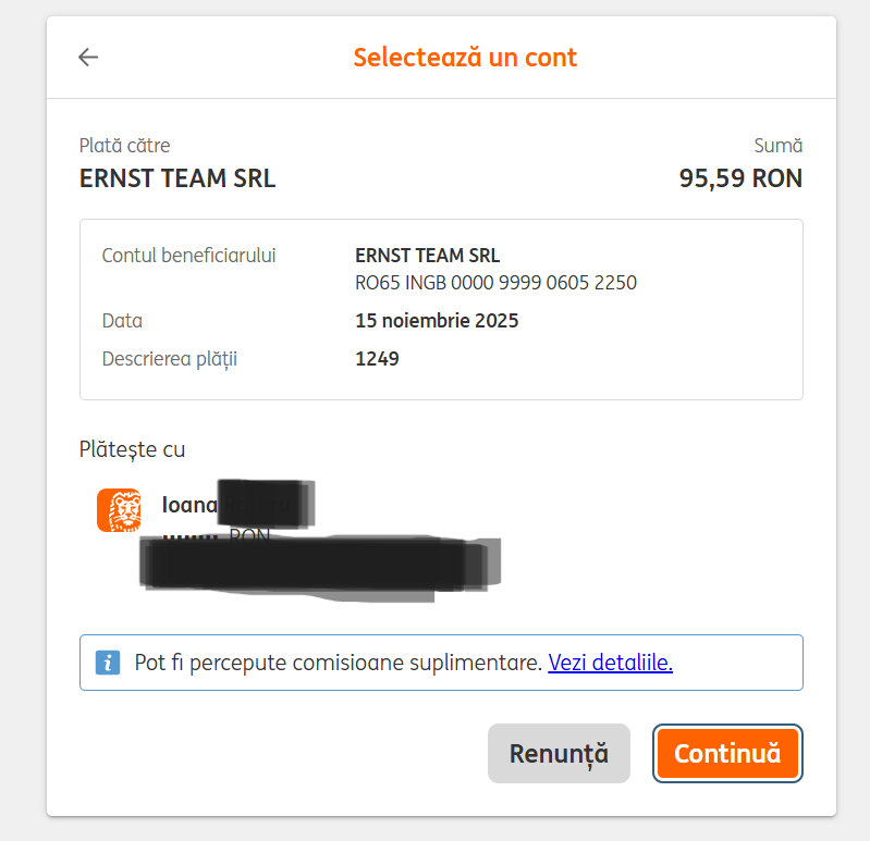 Ulterior, vei regasi tranzactia de plata in extrasul tau de cont.