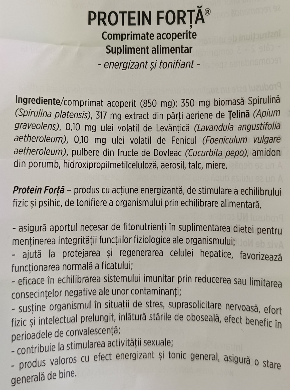 Produsul este un supliment alimentar si nu trebuie sa inlocuiasca o dieta variata si echilibrata si un stil de viata sanatos.