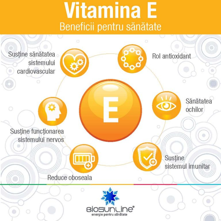 - Reducerea riscului de boli cardiovasculare, prin faptul ca incurajeaza si contribuie la dilatarea vaselor de sange, vitamina E are potentialul de a reduce tensiunea arteriala si riscul de boli cardiovasculare.