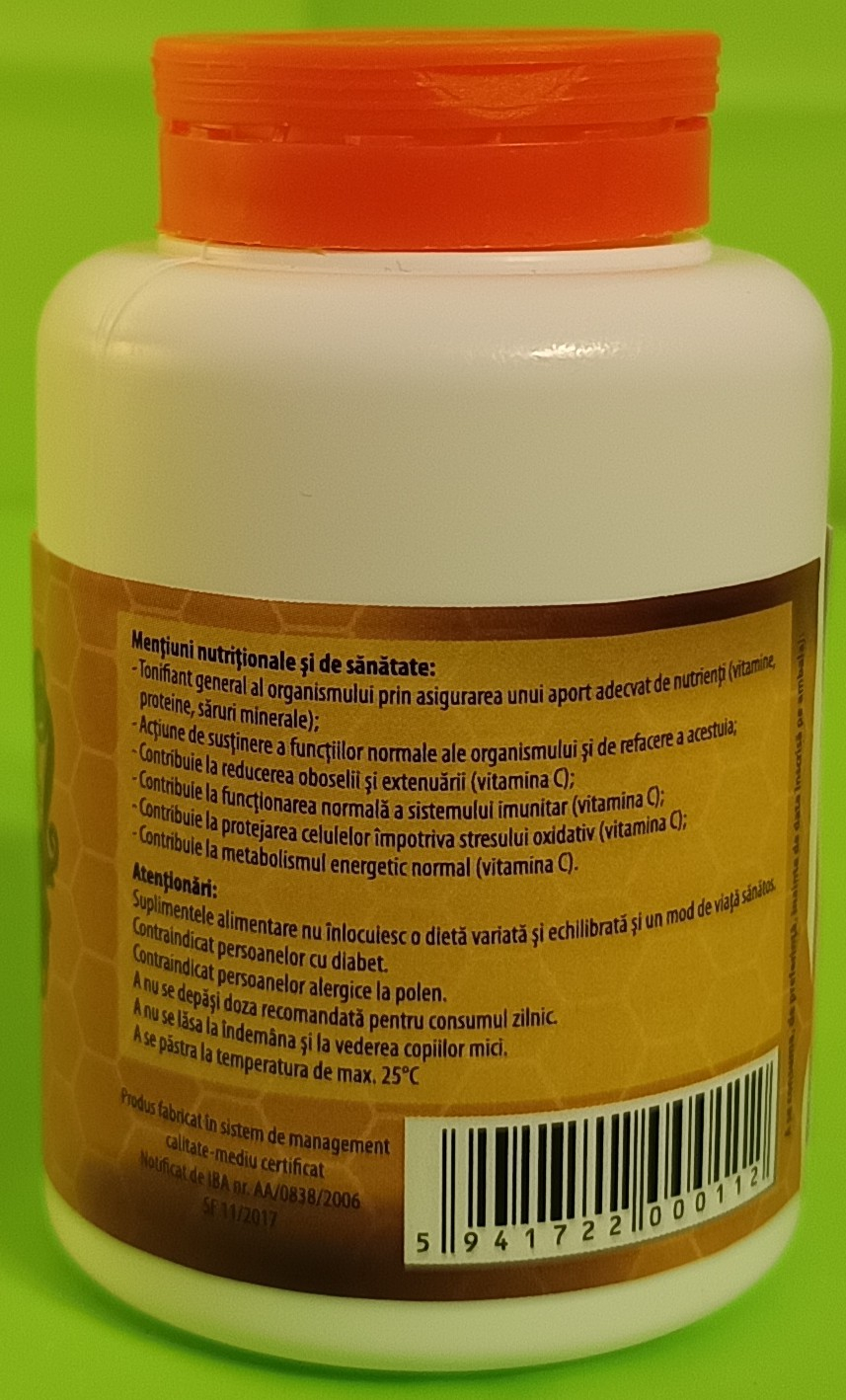 Vitamina C prezenta in compozitia produsului potențează acțiunea nutritivă și funcțională a compușilor din polen.