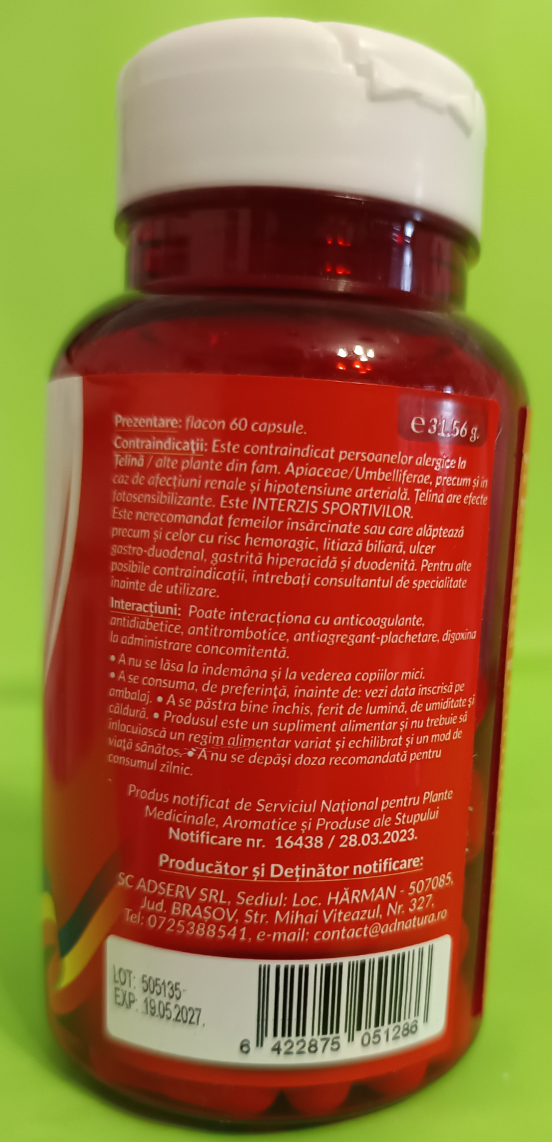 Produsul este un supliment alimentar si nu trebuie sa inlocuiasca o dieta variata si echilibrata si un stil de viata sanatos.