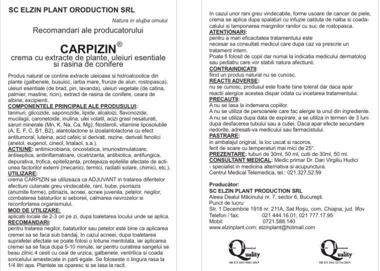 UTILIZARE: crema CARPIZIN se utilizeaza ca ADJUVANT in tratarea diferitelor afectiuni cutanate greu vindecabile, rani, bube, psoriazis (anumite forme), pitiriazis, acnee, acnee juvenila, petelor, negilor, combaterea bataturilor si seboreii, calmarea nevrozelor si reconfortarea organismului.