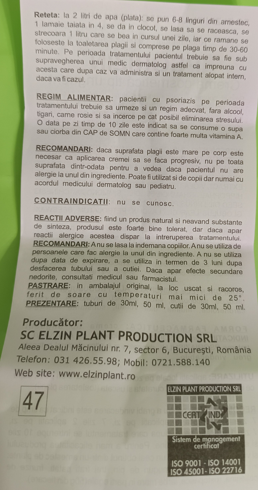 Intotdeauna cititi cu atentie descrierea, eticheta si ambalajul produsului inainte de a-l utiliza! Toate informatiile din acest site sunt publicate cu scop informativ si nu substituie sfaturile sau prescriptiile medicului dumneavoastra sau a oricarui personal medical calificat. Nu trebuie sa folositi informatiile prezente in aceste pagini cu rolul de a diagnostica sau trata oricare probleme de sanatate sau boala sau de a inlocui medicamentele si tratamentele prescrise de persoanalul medical autorizat. Aveti obligatia sa cititi cu atentie tot prospectul. Efectele produselor variaza de la persoana la persoana in functie de stilul de viata, metabolism, varsta, stare de sanatate, etc. Daca aveti sau credeti ca aveti afectiuni medicale sau suferiti vreo boala, adresati-va de urgenta medicului dumneavoastra.