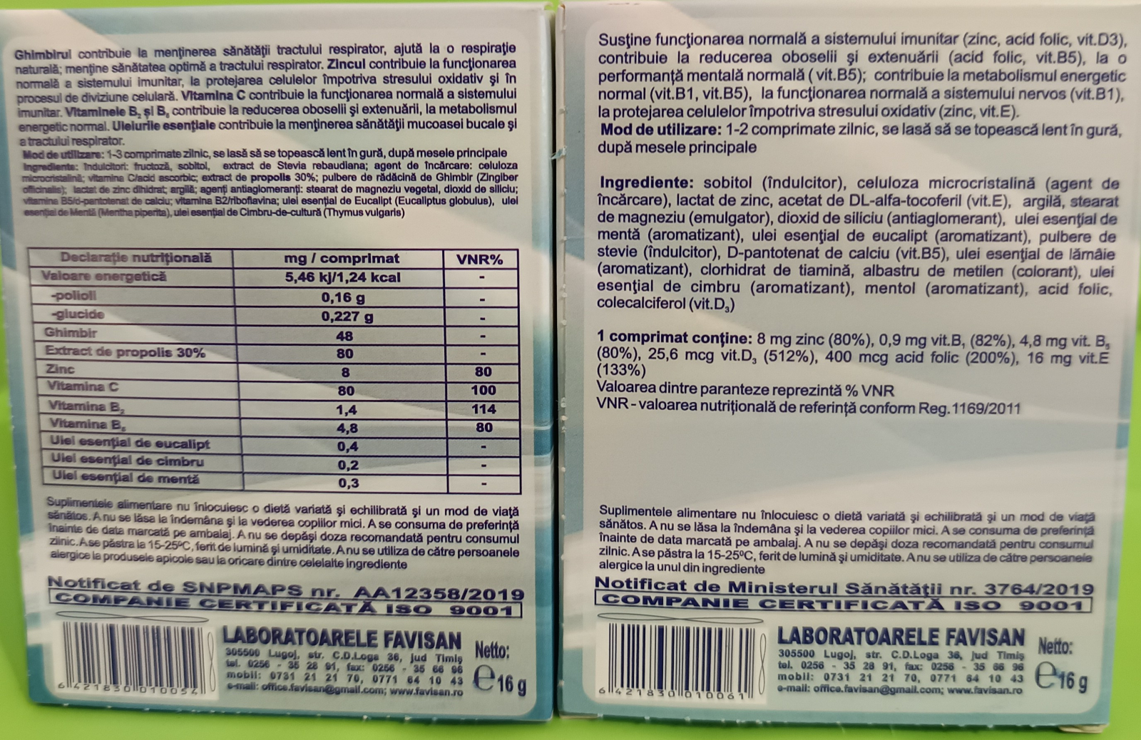 ghimbir, propolis, vitamina C, vitamina B2, vitamina B5, zinc, argilă