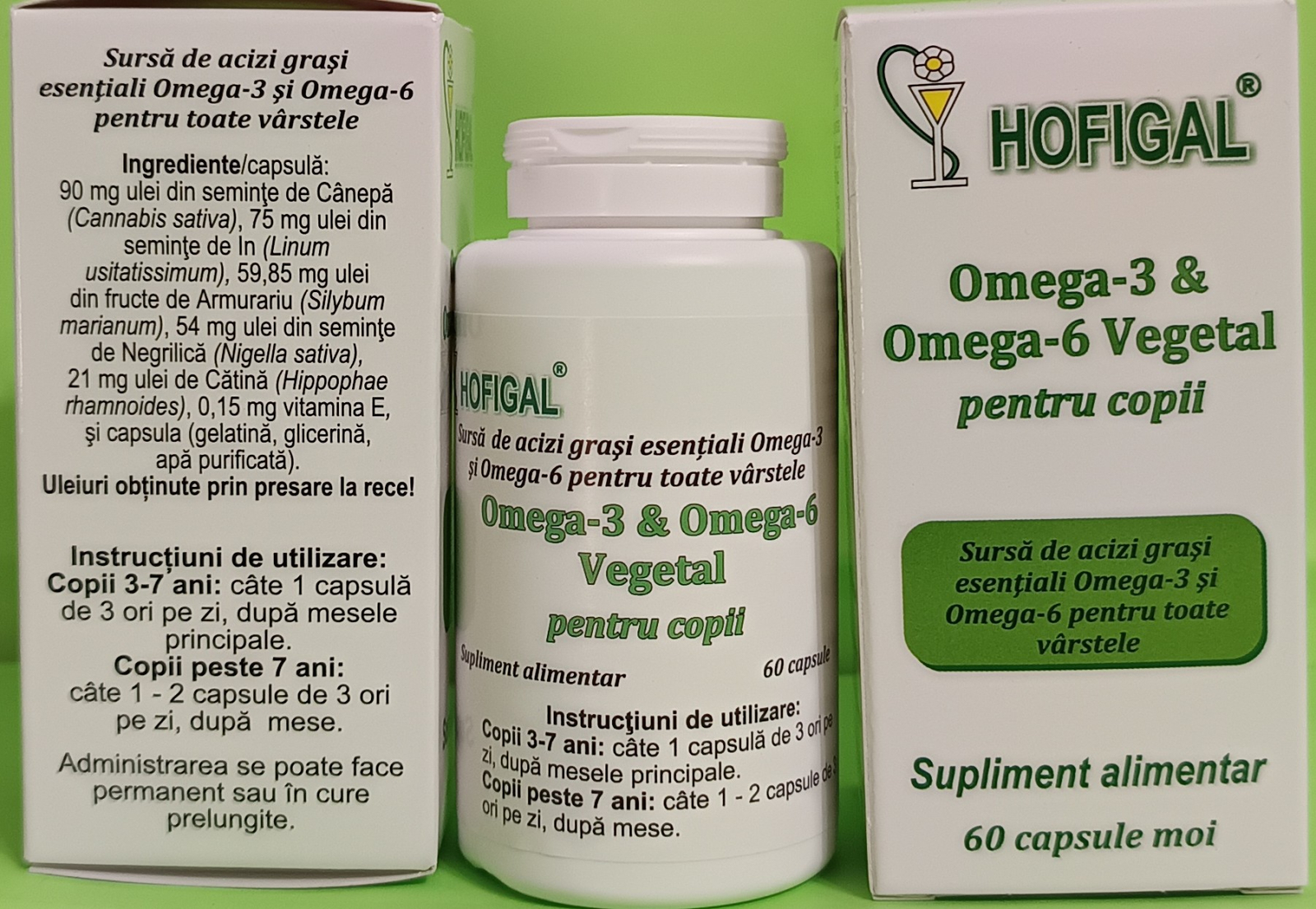 HOFIGAL OMEGA 3 & OMEGA 6 VEGETAL pentru COPII 60 capsule moi, Hofigal
