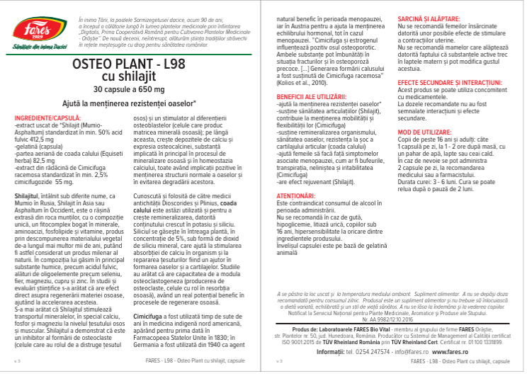 FARES OSTEO PLANT cu SHILAJIT L98, 30 capsule, Fares