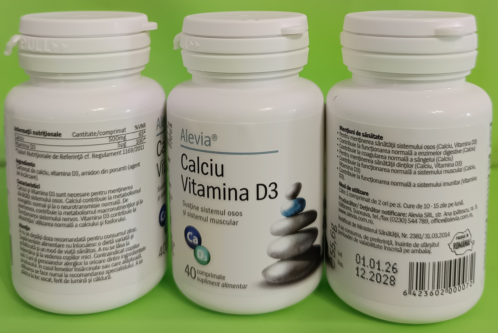 Calciul si Vitamina D3 sunt necesare pentru menținerea sănătății sistemului osos.