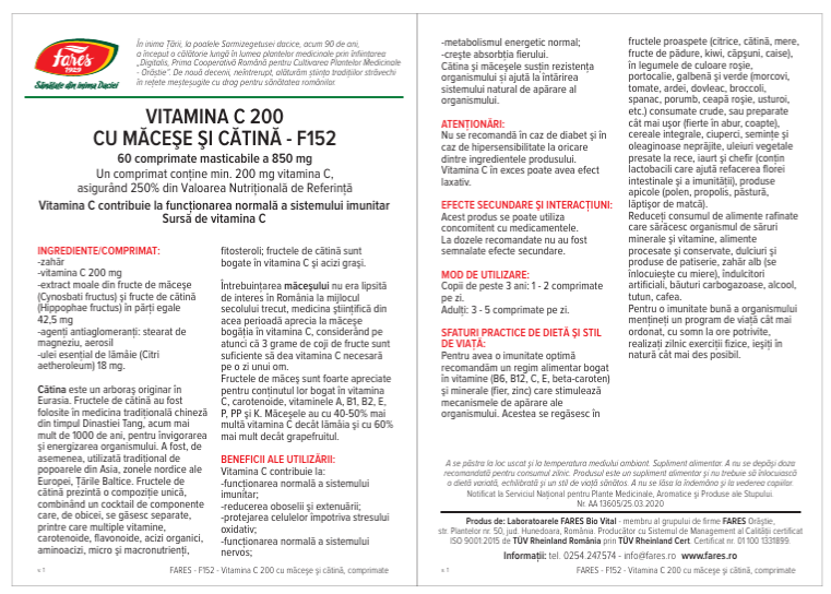 VITAMINA C 200mg cu MACESE si CATINA,comprimate masticabile